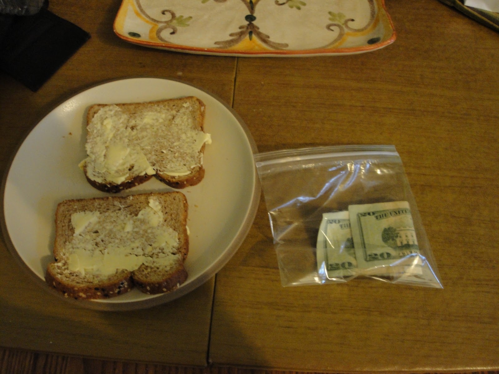 Our buttered bread and money are all set to ring in the New Year. This is a tradition from my Dad’s upbringing, that has been carried forward with us. My Dad has always taught us that on every New Year’s Eve you leave buttered bread on your table, and you leave money outside all night long. The buttered bread is to ensure that in the new year, we will always have enough food to eat, and the money is to ensure that in the new year, we will always have enough money to live our lives.