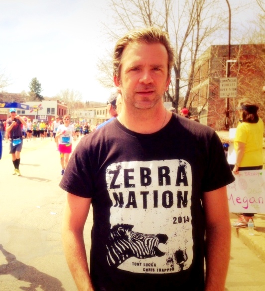 4. Speaking of shirts, I always get a little teary when I see someone wearing a Life as a Zebra shirt; no matter who it is or where it is. So when Chris Trapper sent me this picture on Monday, as he was cheering on runners at the Boston Marathon, it honestly made my day.