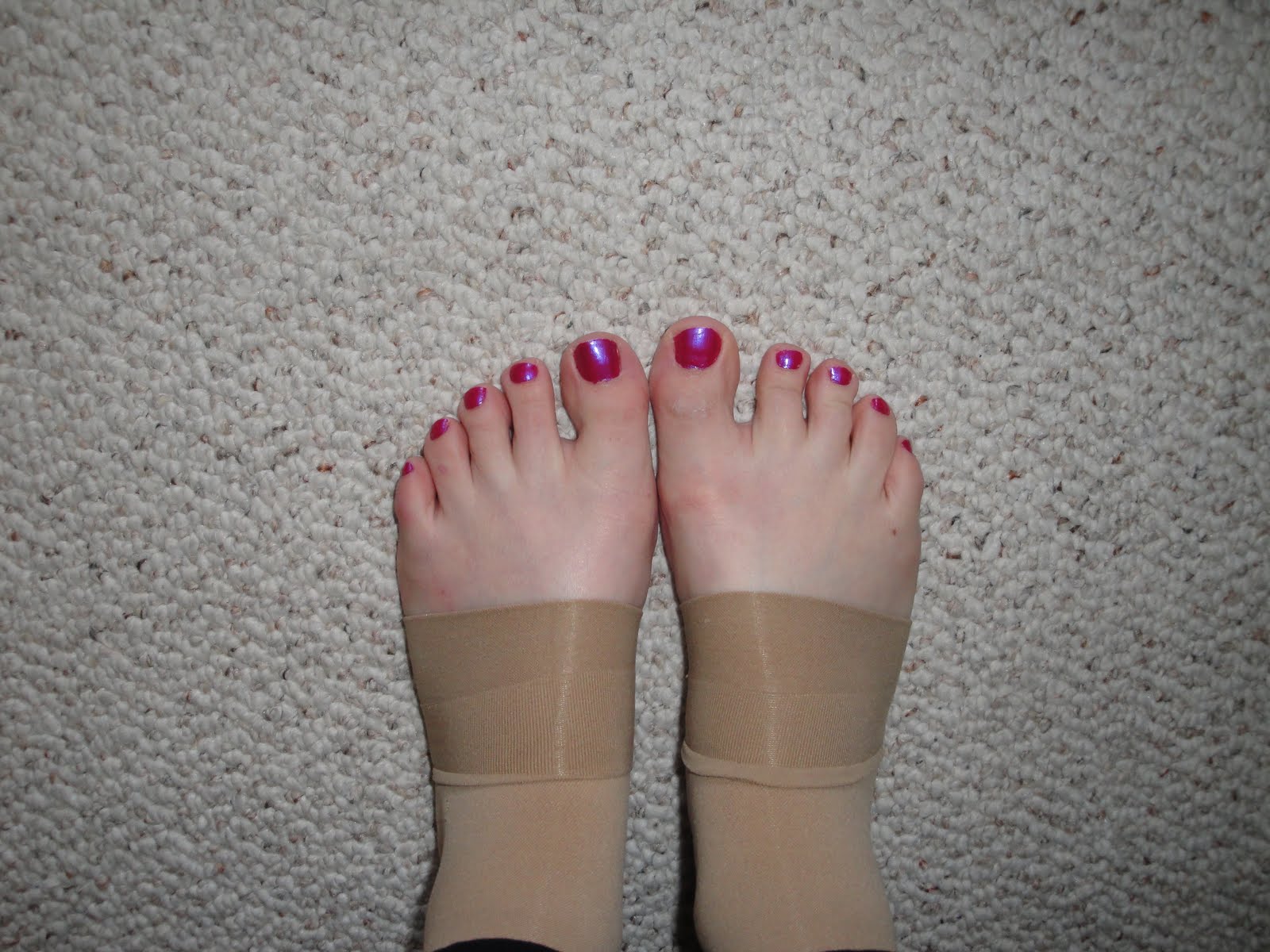 4. My new compression stockings arrived! OPEN TOE with painted toenails AND flip flops.