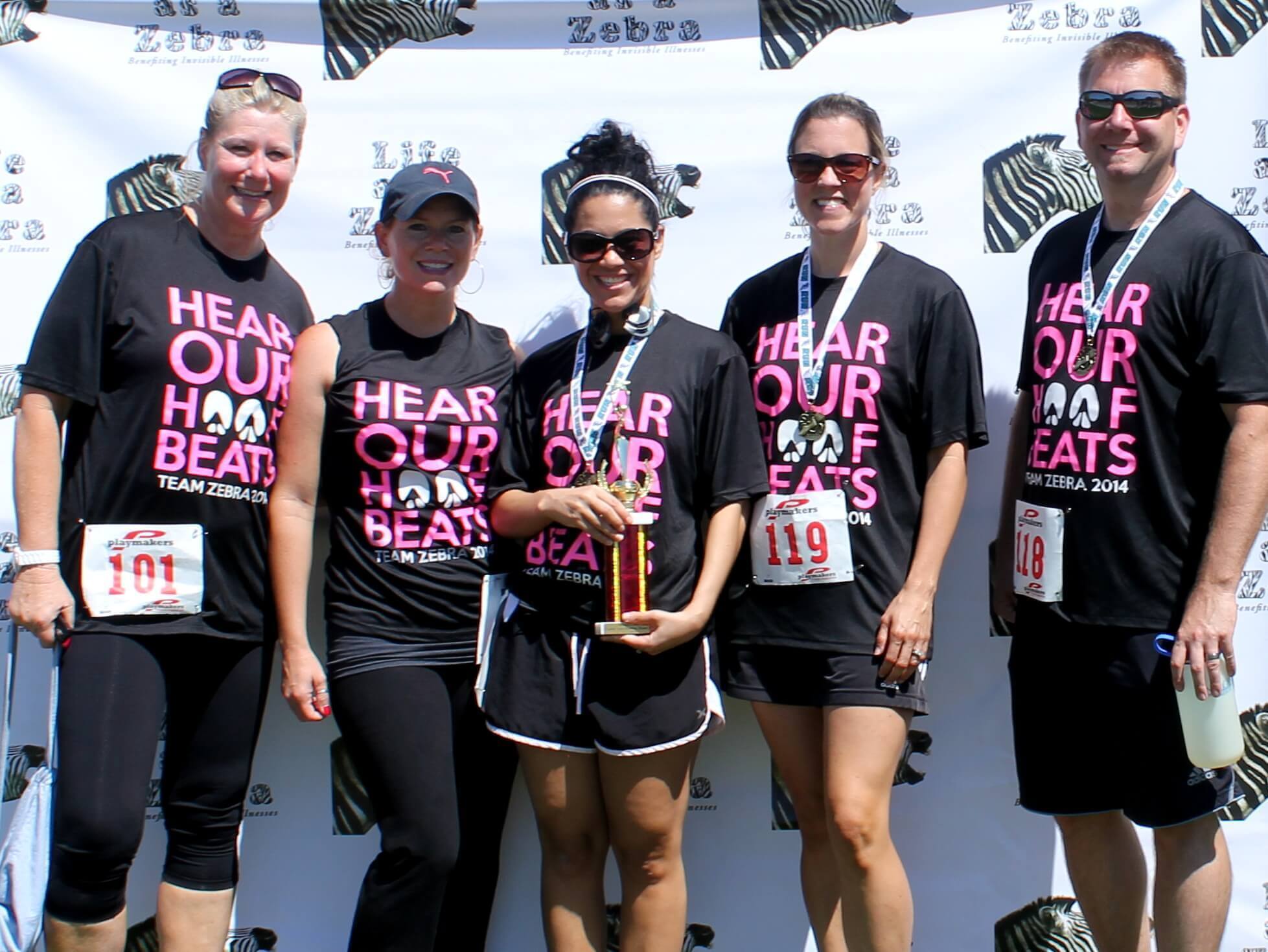 2. Last Saturday, Team Zebra was 40 strong at the Antioch Cares, Get Healthy Now 5k! Not only did our team, work to raise awareness for invisible illnesses, but we also won the trophy for the most team members, and 13 members won individual medals! It was a beautiful day for Zebra Nation!