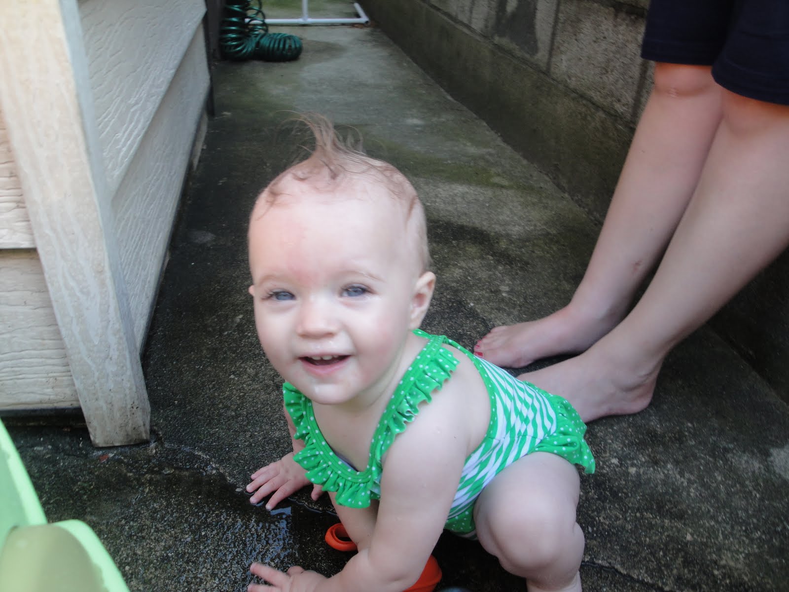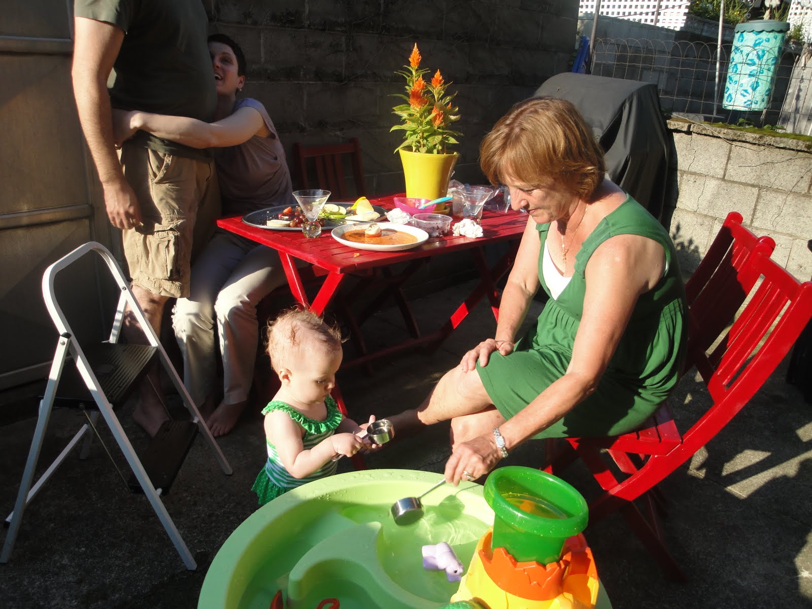 After my nap, everyone chatted on the patio while I played in my water table. My Grandma did not like that my Aunts gave me a mohawk but I kinda dug it. ?