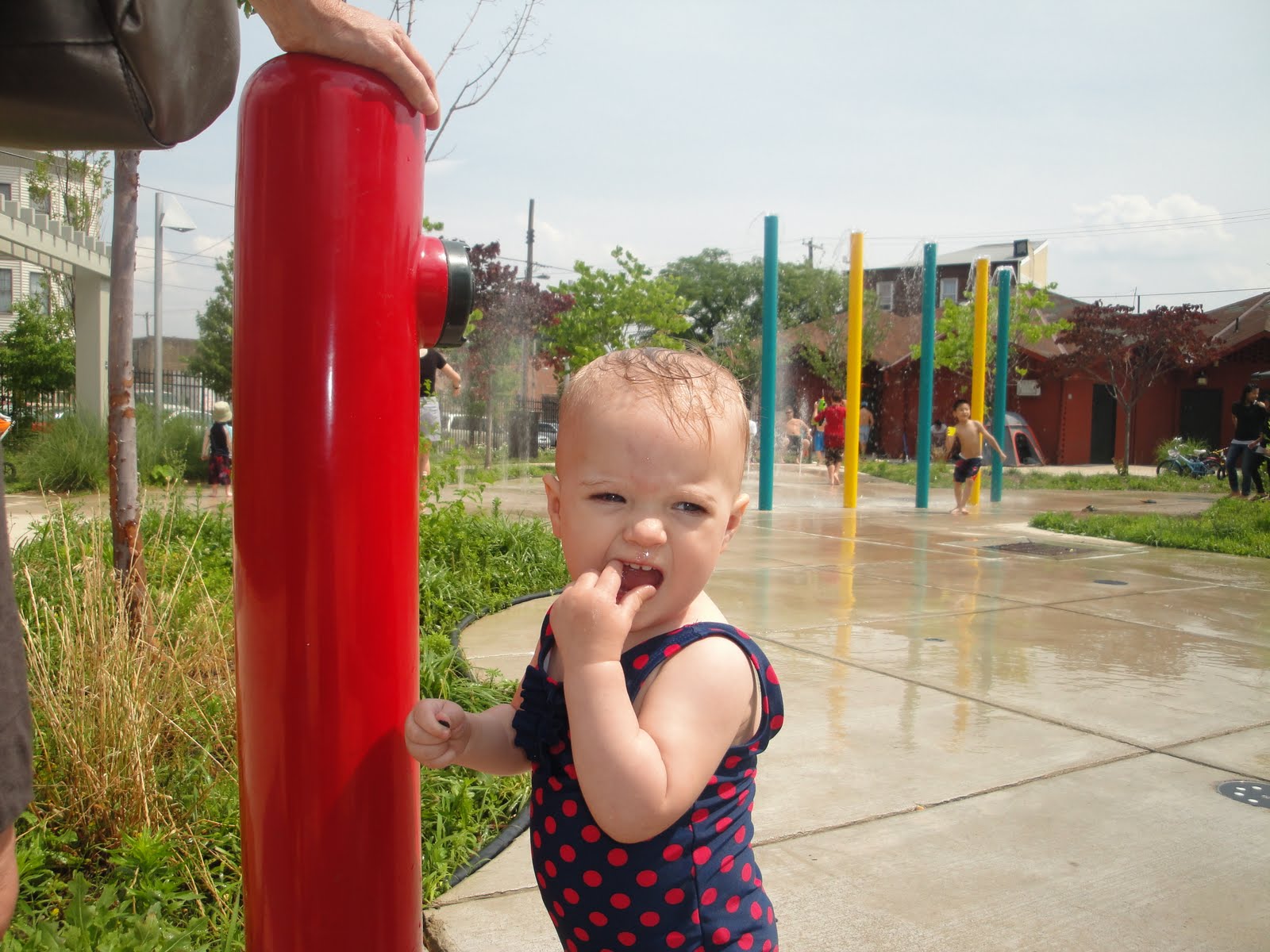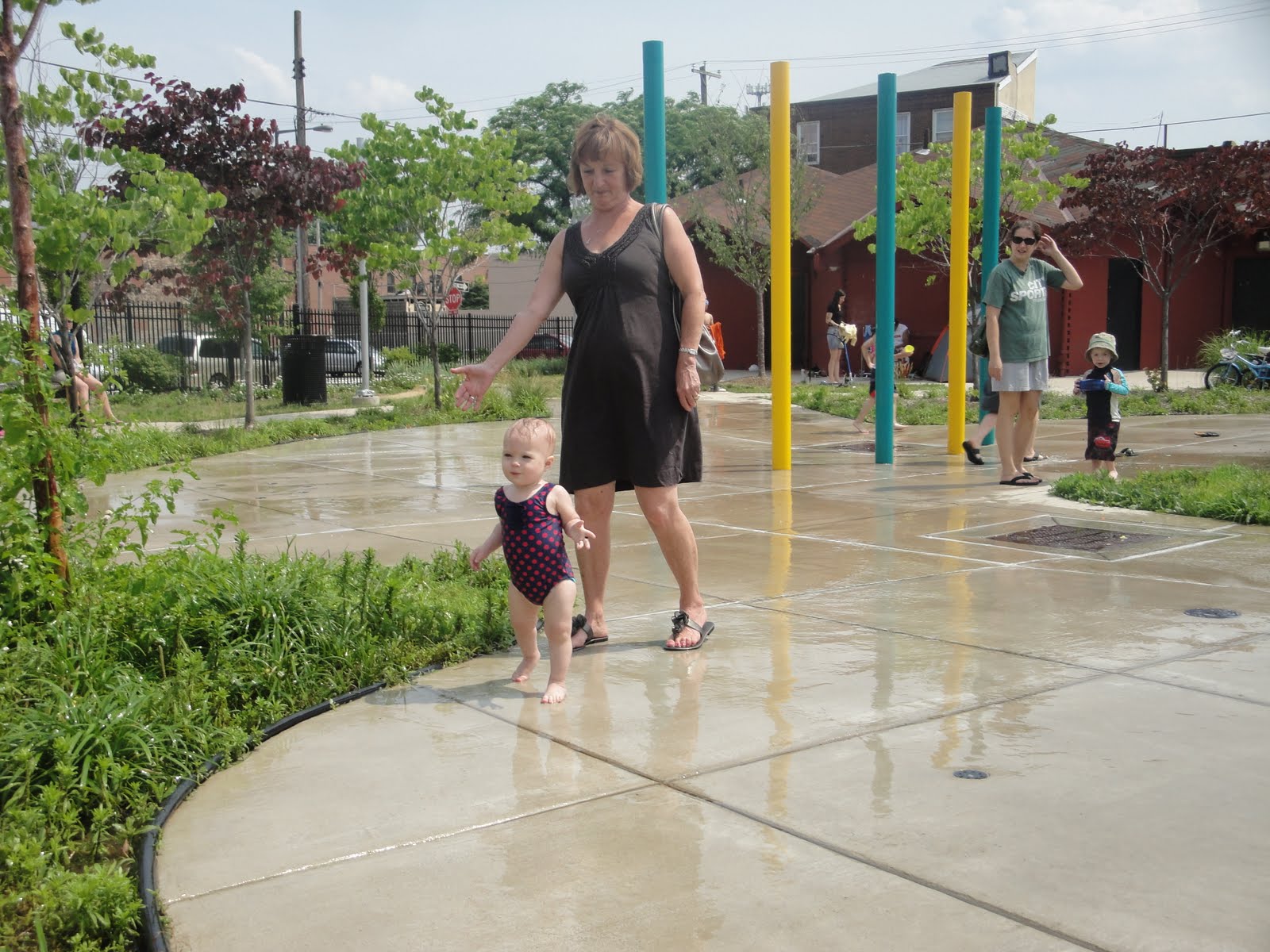 After lunch we went to the splash pad. I wasn’t sure about it at first, but then I decided I loved it; even when the big kids would dump water on my head. We also played on the playground for a while. For the record, my cup from Champp’s made a great water toy.