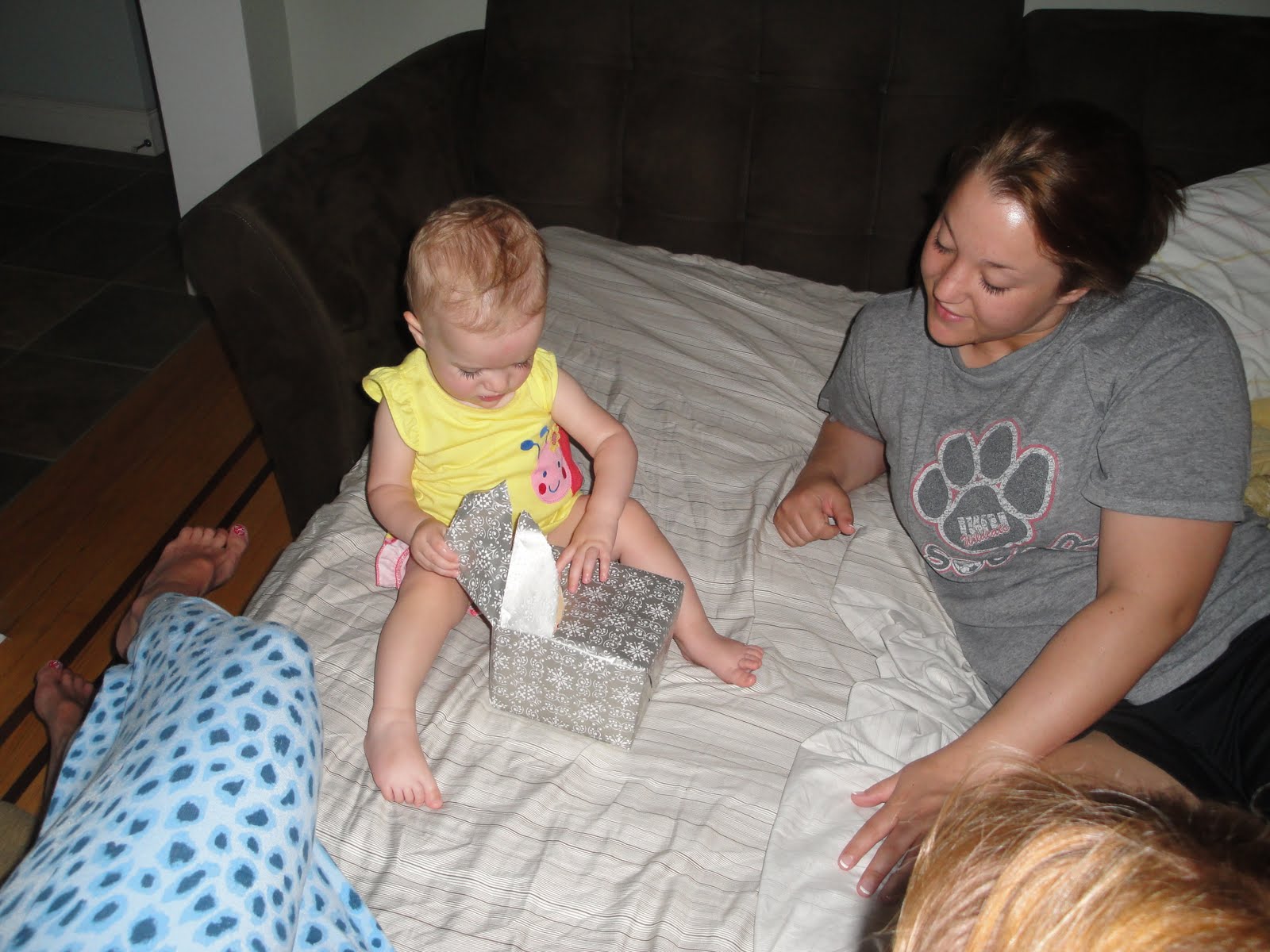 Aunt Katie, Aunt Allie, and I were asleep right after we got home. My Dad caught my Aunts sleeping in this crazy position so he snuck a picture.